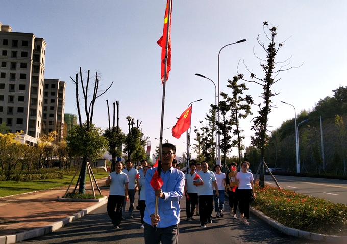 下午3:30,霍山公司员工齐聚霍山激流广场,在公司党支部书记、总经理吴冠琼的带领下,高举党旗、团旗,激情昂扬的出发,一路上谈笑风生,大家也是满面春风。朝气蓬勃的队伍和员工良好的精神面貌引来路人的赞赏。到达终点,为增加活动的趣味性、竞技性,开展了游戏互动,场面十分活跃,大家全情投入,既锻炼了身体,又放松了心情。