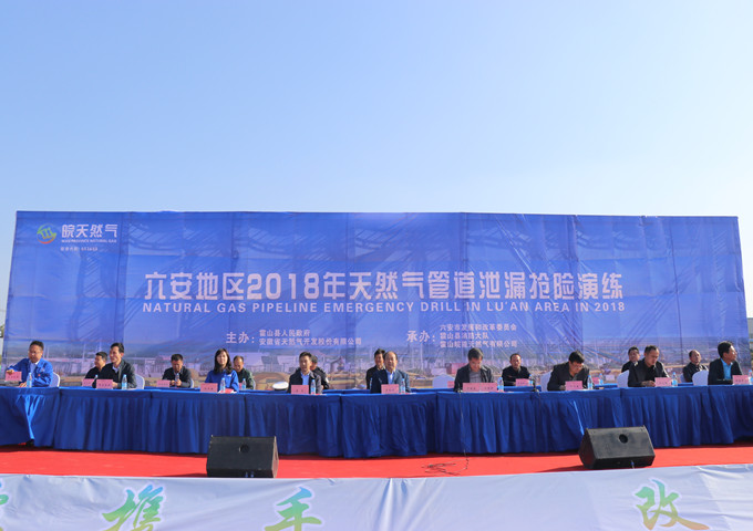 11月1日,由省天然气公司和霍山县人民政府主办,六安市发改委、霍山皖能公司、霍山县消防大队承办的“六安地区2018年天然气管道泄漏抢险演练”在六安市霍山县成功举行。皖能集团副总经理、安徽省天然气开发股份有限公司党委书记、董事长贾化斌,霍山县委副书记、县长项跃文,县委常委、副县长王焱,省天然气公司副总经理吕石音和11家子公司负责同志及政府有关部门负责人共100多人观摩演练。